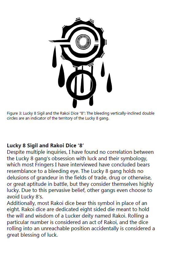 The Fringe Iconography Guide booklet is your quintessential guide to the symbology and iconography used by factions within the Fringe. Created by Dr. Martollow Kovski, this book will help you identify the hidden meanings behind symbols you might come across in your journeys through the Fringe.